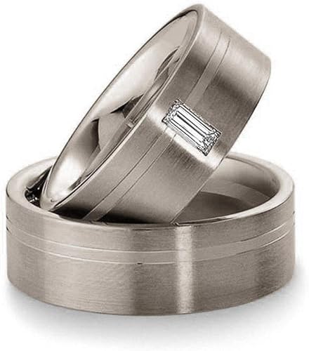 Paar Klassische Trauringe Eheringe In Aussen Platin 950 Innen Platin 950 Mit Zus 0 12 Ct Baguette Diamant Tw Vs Von Acredo A 1054 3