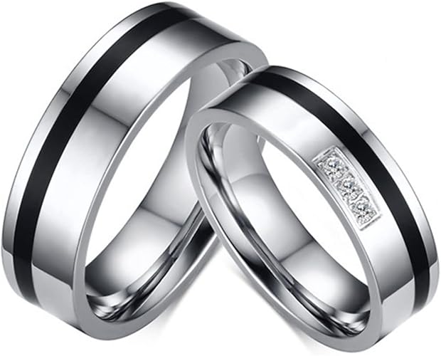 Sonmo 2 Stuck Frau Mann Edelstahl Eheringe Zweifarbig Eheringe Zirkonia Fur Paare Schwarz Silber Frau 49 15 6 Mann 57 18 1 Breit 6mm Amazon De Schmuck