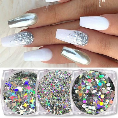 Holographics Mirror Nail Art Glitter Powder Silver Star Moon Uv Gel Nail Sequins Ebay