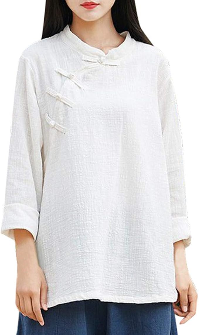 Ashui Damen Langarm Tops T Shirt Langarmshirts Weiss Einfarbig Oberteil Button Down Blusenshirt Baumwolle Chinesischer Stil Damen Bluse T Shirt Sommer Herbst Freizeit Lose Tunika Tops T Shirt Amazon De Bekleidung