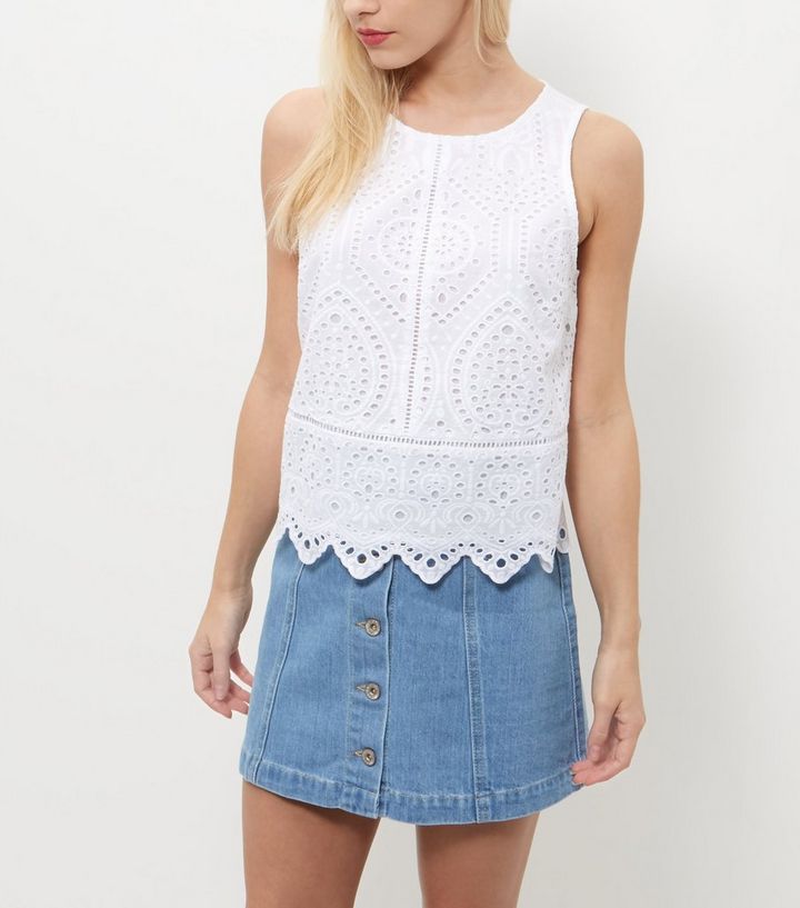 Petite Weisses Armelloses Oberteil Mit Muschelsaum Und Kontrastkragen New Look