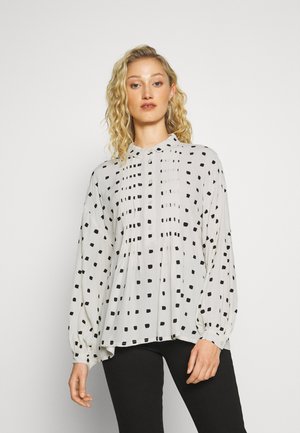 Weisse Punkte Einreihig V Ausschnitt Langarm Beilaufiges Bluse Tops Oberteile Damen Mode Blusen Oberteile