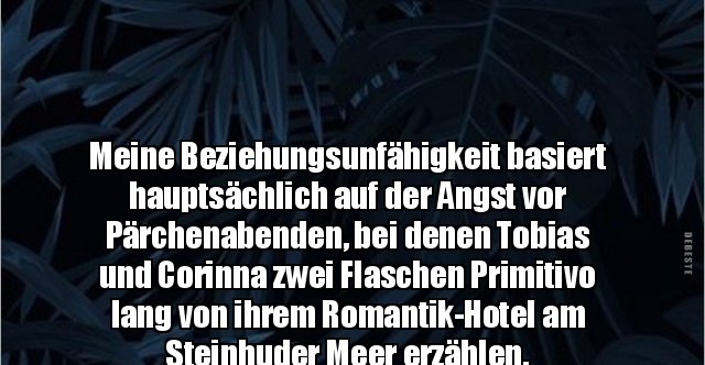 Sprüche & Spruchbilder Wir habe eine sehr große Auswahl an Sprüchen, sehr hübsch bebildert zum Versenden beispielsweise über WhatsAppDie Themengebiete bzw Spruchkategorien reichen über Abschied, Geburt, Geburtstag aber auch versaute SprücheStöbere einfach ein bisschen!. 2801 Entdecke die Pinnwand „Relationships“ von Sigrun Muyakwa Dieser Pinnwand folgen 161 Nutzer auf Weitere Ideen zu weisheiten, sprüche zitate, sprüche. Sry, thats me ( beziehungsunfähig sprüche beziehungsunfähig beziehungsunfähig gedicht beziehungsunfähig sprüche beziehungsunfähig sprüche4 beziehungsunfähigkeit du bist gestört emotional sprüche geburtstagsspruch für beziehungsunfähigen mann gedichte beziehungsuntauglich spruch beziehungsunfähig sprüche.