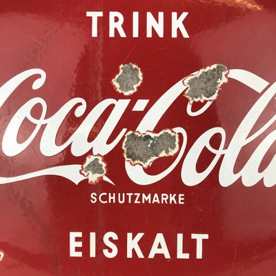 Vintage German Metal Enamel Drink Coca Cola Button Sign 1960s For Sale At Pamono