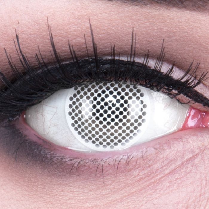 Das Weiß deiner Augen, die Sklera, wird noch größer, wenn du eine vollständig weiße Kontaktlinse ausprobierst Einige Kostüme, die wir häufig sehen, sind Tim Burtons Corpse BrideFigur, Emily, und die Nightmare Before ChristmasCharaktere Jack und Sally. Weiße Mini Sclera Kontaktlinsen Weiße Mini Sclera Kontaktlinsen verleihen dem Auge einen gespenstischen Effekt Wenn du die schwarze Pupille in der Mitte sichtbar lässt, bedeutet der größere Durchmesser der Kontaktlinsen, dass dein gesamtes Auge eine gruselige weiße Farbe hat. Weiße Kontaktlinsen Modell "Whiteout" Die Whiteout Kontaktlinse ist sehr einfach gehalten Sie bewirkt jedoch einen unfassbaren Effekt Das leuchtende weiß wirkt so irritieren und unbekannt, selbst in dunklen Räumen ist dies sofort zu erkennen.