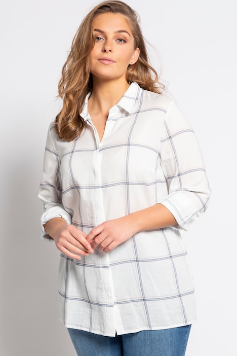 Longbluse Grosses Karo Langarm Biobaumwolle Longblusen Blusen Ulla Popken Deutschland