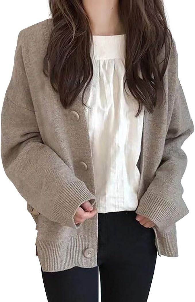 Brisezz Damen Oberteile Frauen Stricken Spitzenbluse Lose Minimalistisch Gestrickter Mantel Feste Lange Hulsen Knopf Pullover Strickjacke Grosse Grossen Winter Sweatwear Strickoberteil Beige Amazon De Bekleidung