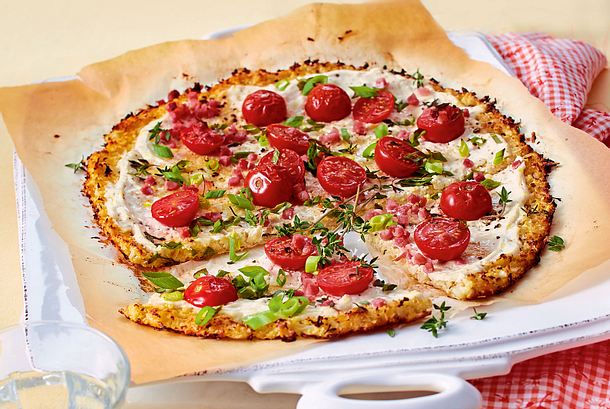 Blumenkohlboden aus dem Backofen nehmen und mit Cherrytomaten, Pilzen und Salami belegen Mozzarella in Stücke reissen und darauf geben Blumenkohlpizza für ca Minuten auf der untersten Rille backen Mit Basilikum und BalsamicoCrème garnieren. Finde was du suchst unkompliziert & schnell Jetzt ausprobieren mit ♥ Chefkochde ♥. Pizza und low carb – wie passt das zusammen?.