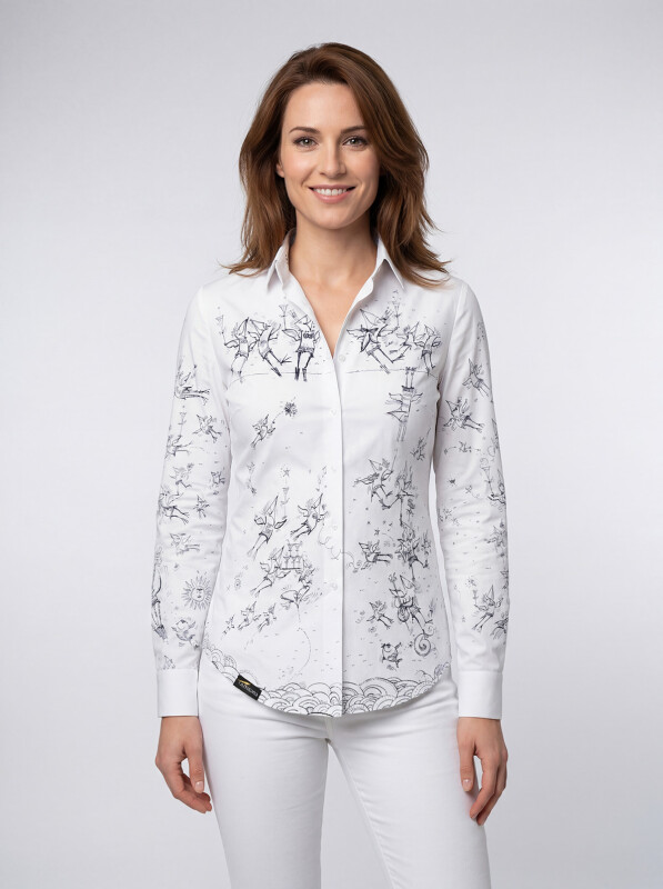 Schrage Vogel Weisse Bluse Mit Vogeln Germens