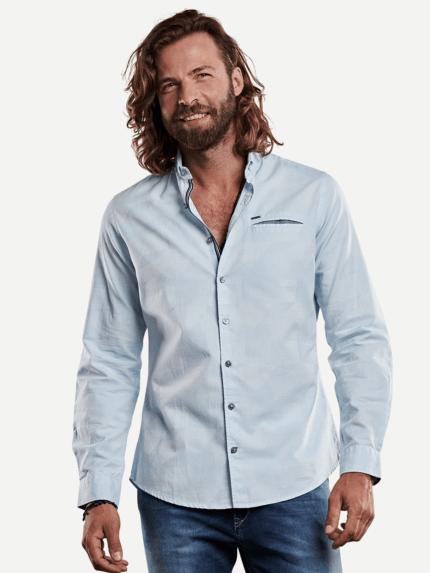 Koike Hemd Gemustert Hemd Hemd Stehkragen Herrenhemd