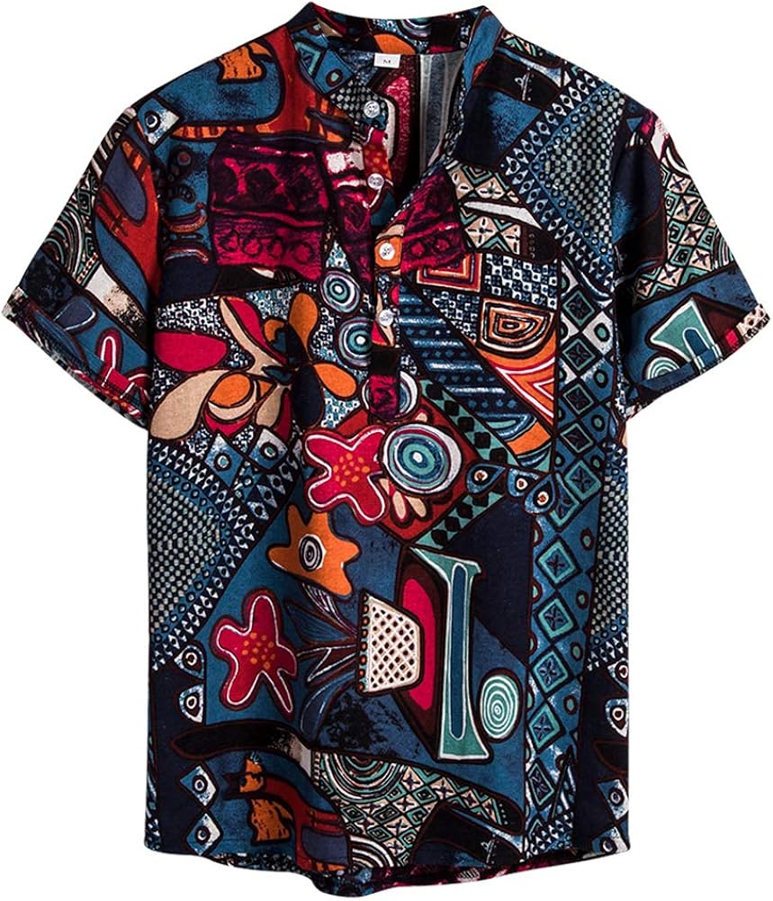 Newistar Leinenhemd Herren Kurzarm Relaxed Fit Henley Shirt Manner Retro Ethnische Freizeithemd Sommer Strand Gemustertes Grandad Hemd Amazon De Bekleidung