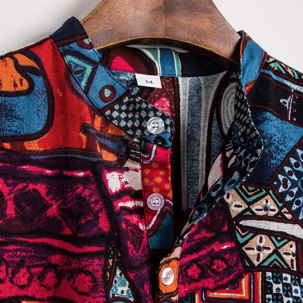 Newistar Leinenhemd Herren Kurzarm Relaxed Fit Henley Shirt Manner Retro Ethnische Freizeithemd Sommer Strand Gemustertes Grandad Hemd Tops T Shirts Hemden Freizeithemden