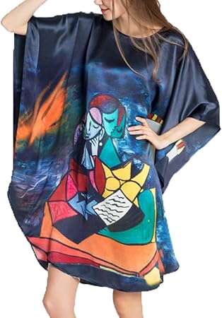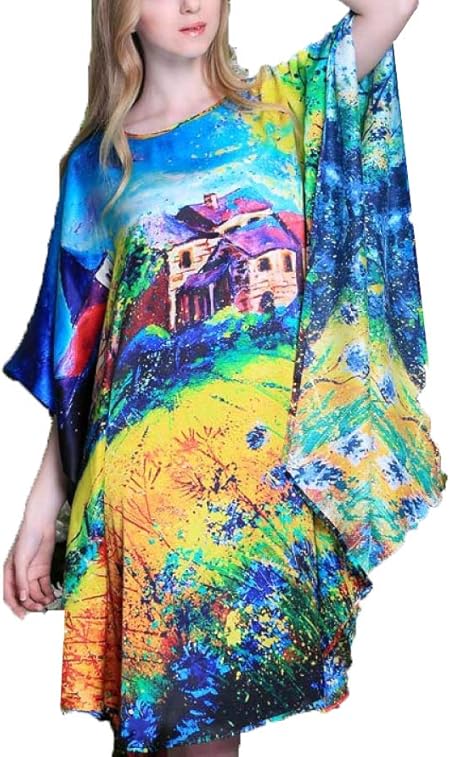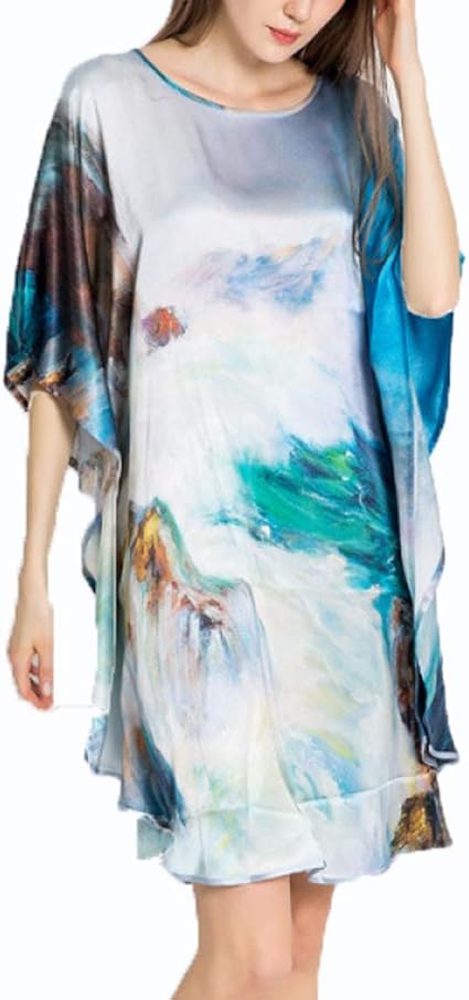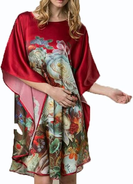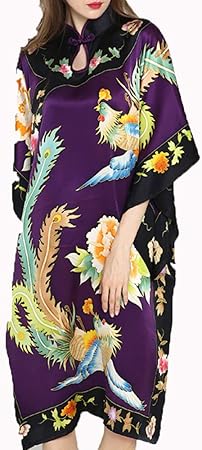 Damen Seiden Pyjama 100 Damen Seiden Damennachthemd Lang Hypoallergen Kimono Nachthemd Seide Tunika Negligee Chinesische Feinzeichnung Multi Colored Onesize Amazon De Kuche Haushalt