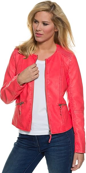 Gina Laura Damen Lederjacke Biker Jacke Kunstleder In Pink Ohne Kragen Gesteppte Schulter Reissverschluss Bis Grosse Xl Koralle Xl 52 Xl Gina Laura Amazon De Bekleidung
