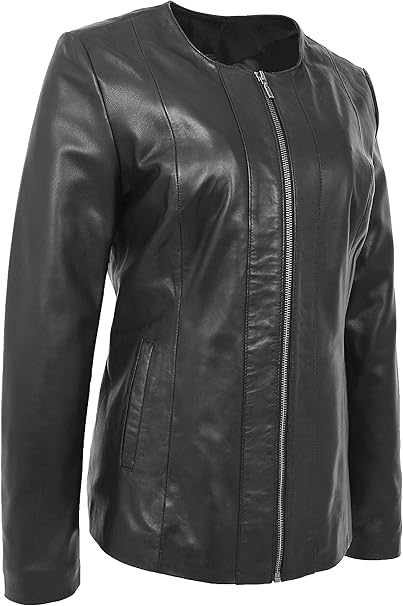 Damen Lederjacke Ohne Kragen Schwarz Drw262 Amazon De Bekleidung