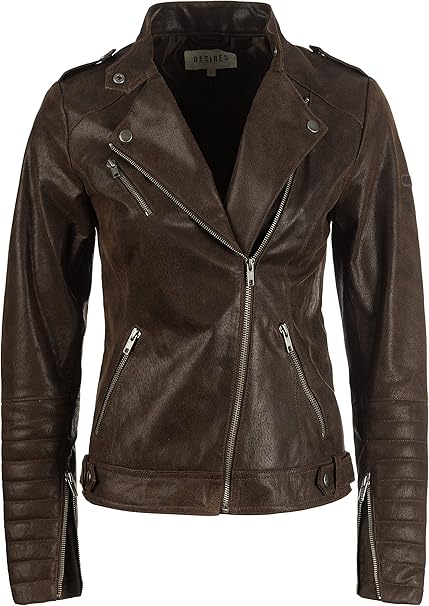Desires Zalla Damen Lederjacke Bikerjacke Echtleder Mit Reverskragen Amazon De Bekleidung