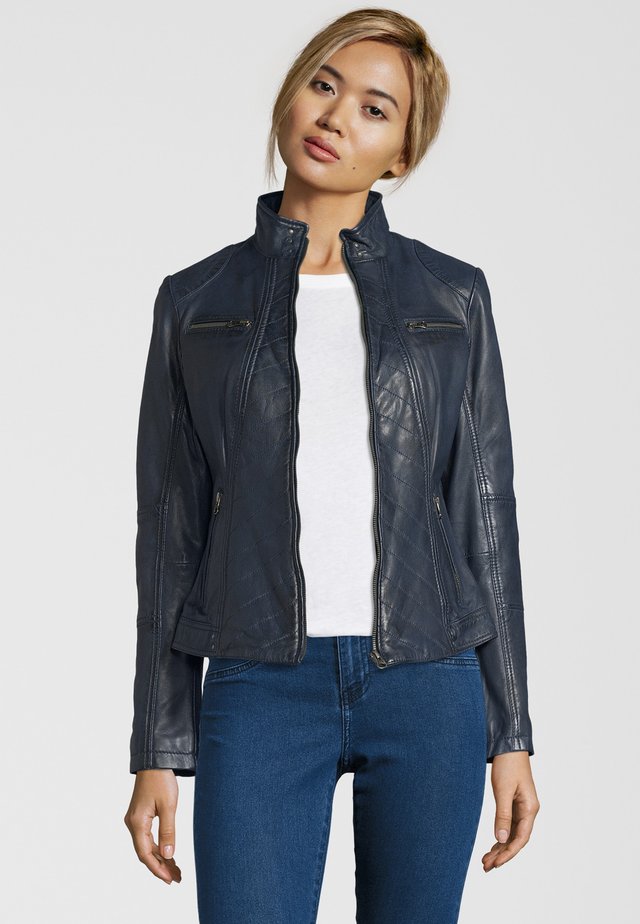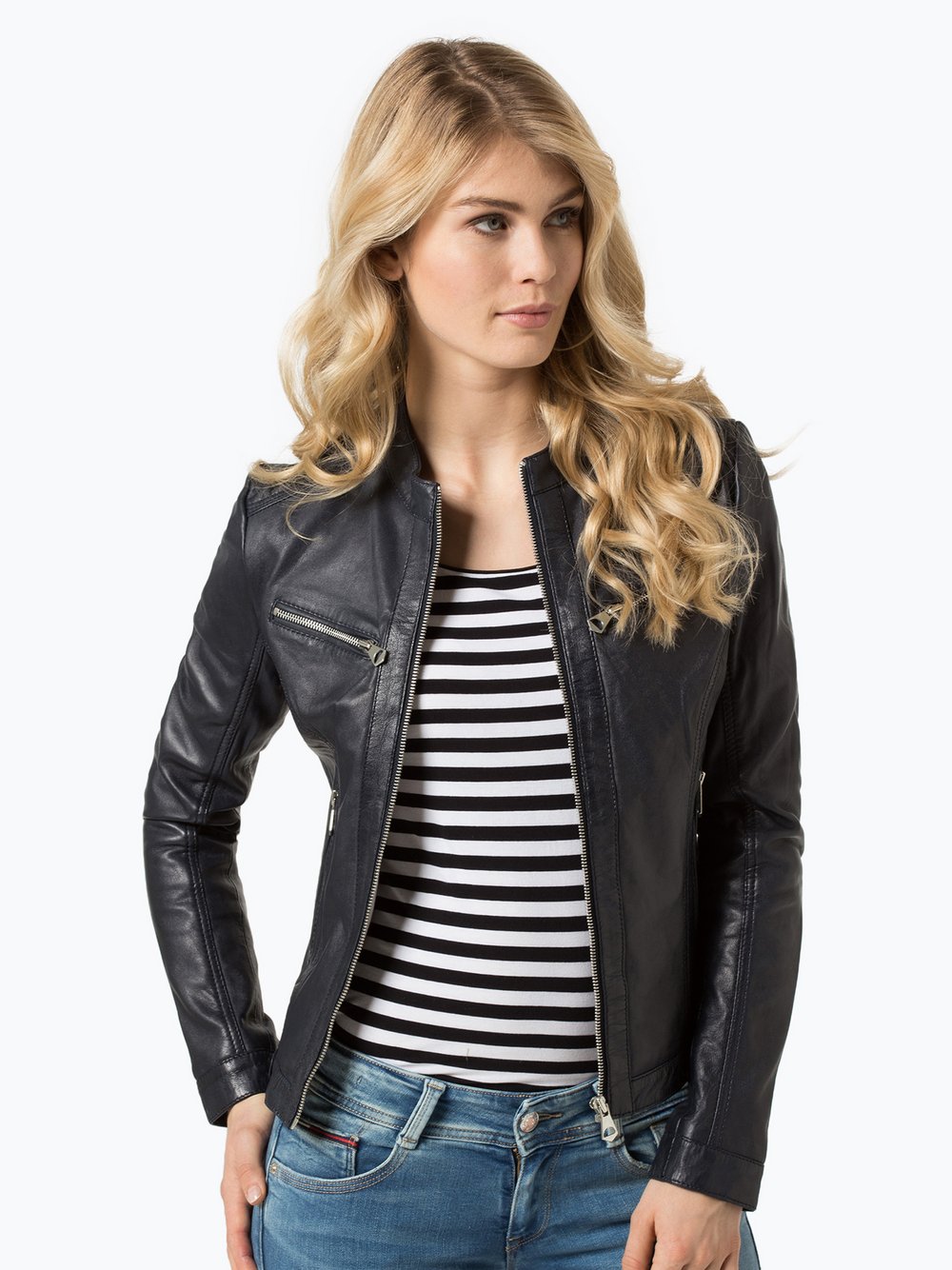 Leder Fischer Stacy Blaue Lederjacke Fur Damen Von Trendzone