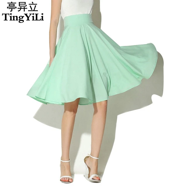 Tingyili Hohe Taille Midi Rock Sommer Schwarz Pink Mint Green Weiss Frauen Rock A Linie Elegante Damen Knielangen Skater Rock Skater Skirt Waist Midi Skirtmidi Skirt Aliexpress