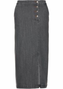 Jeansrock Jeans Rock Knielanger Rock Midi Grau Meliert Stret