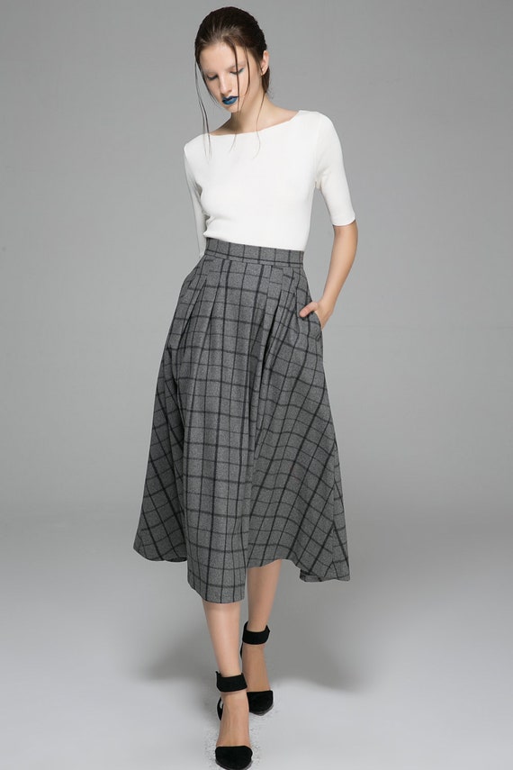 Grau Karierten Rock Wollrock Midi Rock Winterrock Damen Etsy