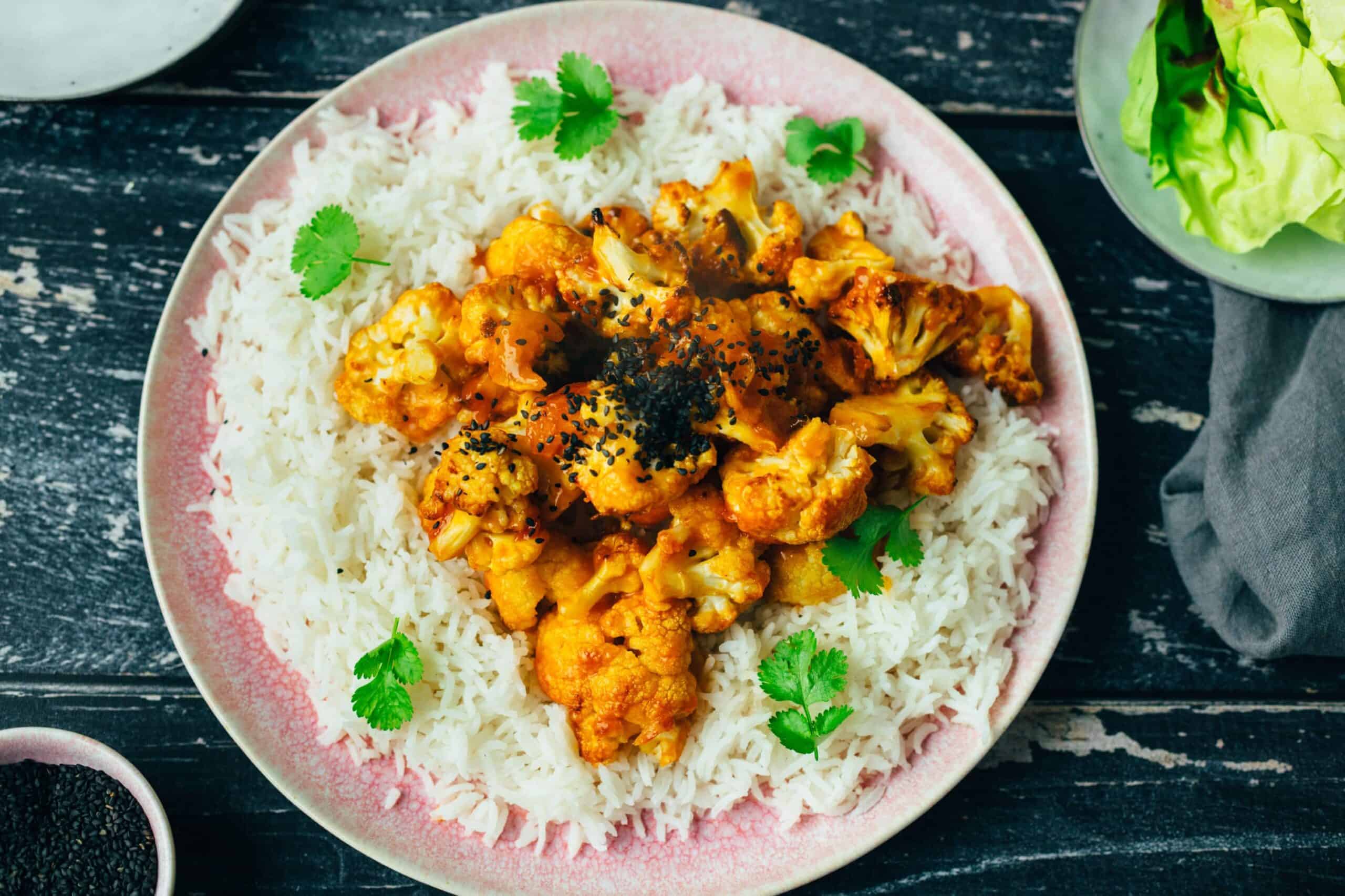 Knuspriger Cashewbutter Tofu Mit Blumenkohl Reis Vegane Vibes