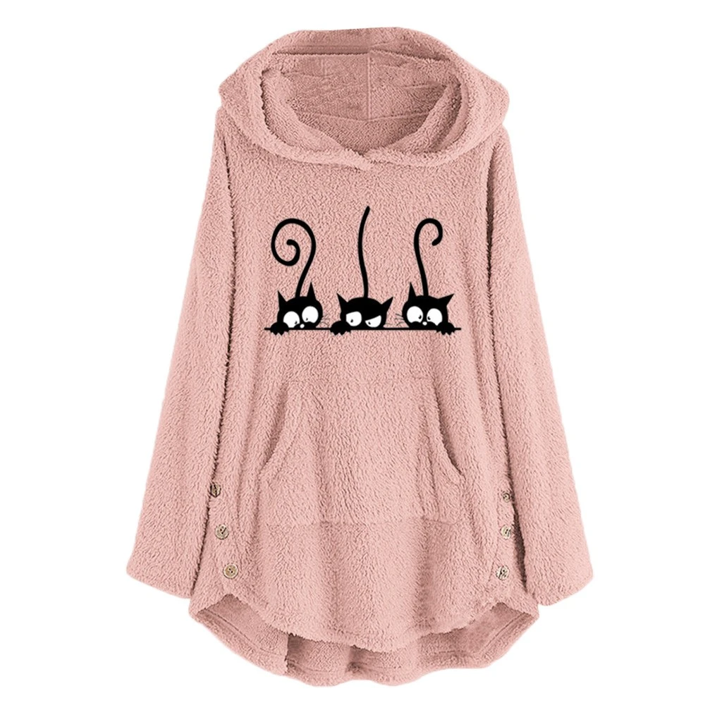 Plus Size Fleece Cat Embroidery Sweatershirt Oversized Warm Hoodie Button Long Pullover Womens Winter Warm Pocket Tops 5xl Y3 Hoodies Sweatshirts Aliexpress