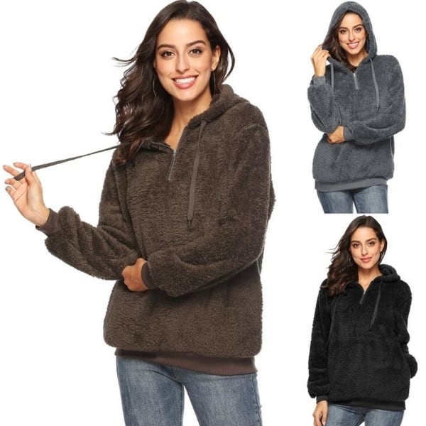 Women S Hooded Fleece Sweatshirt Warm Fuzzy Zip Up Hoodie Pullover Overstock 2545