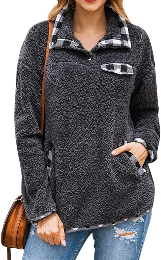 Angashion Women S Long Sleeve 1 4 Zip Up Lapel Fleece Sweatshirt Warm Plaid Fluffy Hoodies Pullover At Amazon Women S Coats Shop