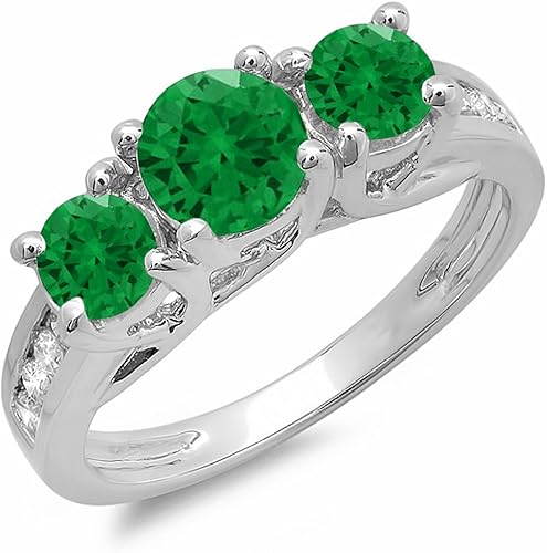 Dazzlingrock Collection Damen 14k Weissgold Rund Gruner Smaragd Weiss Diamant Braut 3 Stein Verlobungsring 9 Amazon De Schmuck