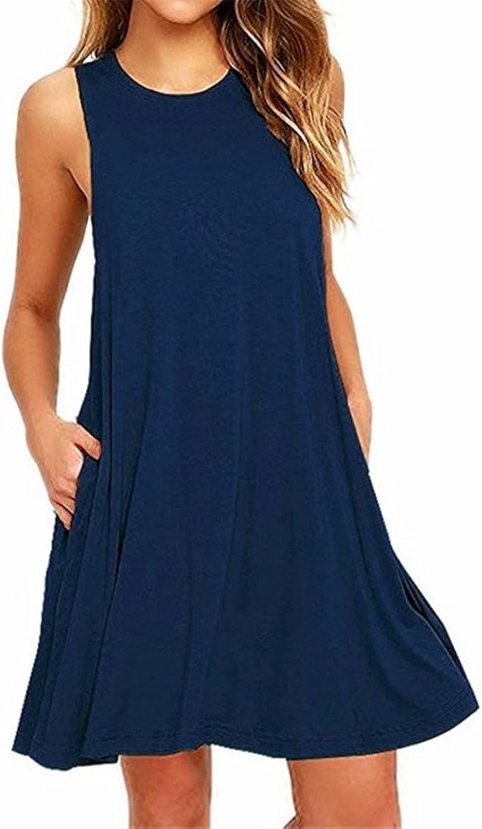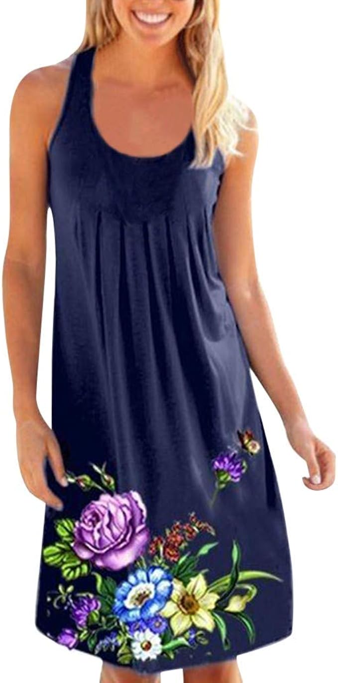 Ajpguot Sommerkleider Damen Casual Armellos T Shirt Kleid Kurz Blumen Kleider Blusenkleider Strandkleider Mit Taschen Amazon De Bekleidung