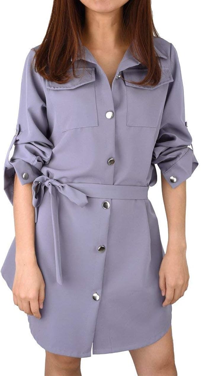 Qimanzi Kleider Damen Ubergrosse Freizeit Kleider Blusenkleider lich Lange Armel Asymmetrisch Revers Taschen Taste Mantel Kleid Amazon De Bekleidung