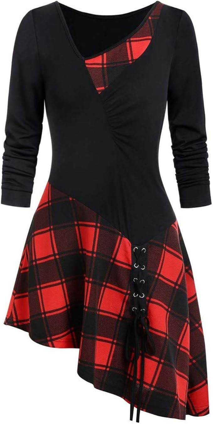 Overdose Damen Elegant Langarm Kariertes T Shirt Kleider Blusen Kleider Casual Asymmetrisch Spitzen Bluse Patchwork Partykleider Blusenkleid Pullover 19 Damen Kleidung Amazon De Bekleidung