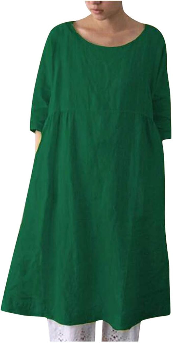Lopily Damen Kleider Aus Baumwolle Einfarbige Basic Tunika Kleid Lockere Lose Blusenkleider Freizeit Shirtkleid Langarm 3 4 Arm Herbstkleid Bequeme Strandkleid A Linie Kleid Amazon De Bekleidung