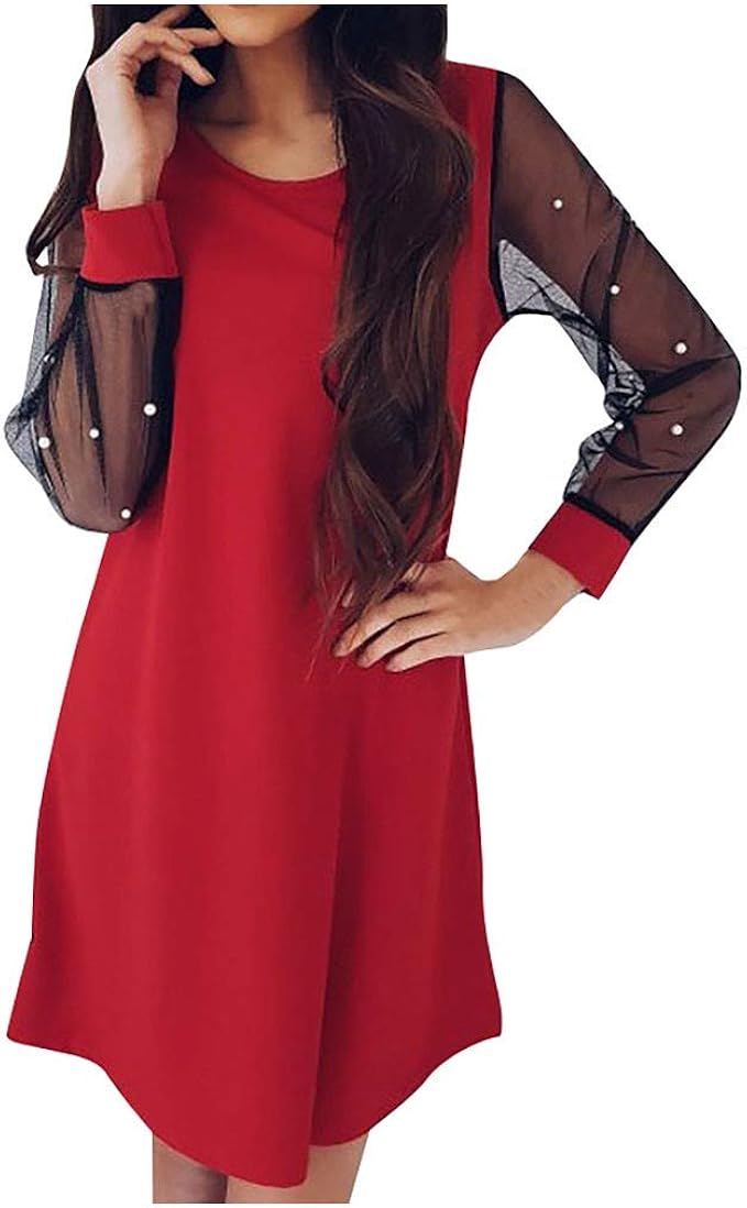 Fruhling Und Herbst Damen Casual Plissee Kurz Kleid Blusenkleider Rundhals Langarm Kleider Partykleid Abendkleider Cocktailkleid Ballkleid Amazon De Bekleidung