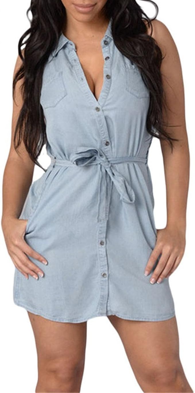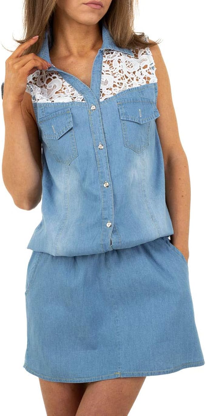 Ital Design Damen Kurzes Jeans Blusen Kleid Amazon De Bekleidung