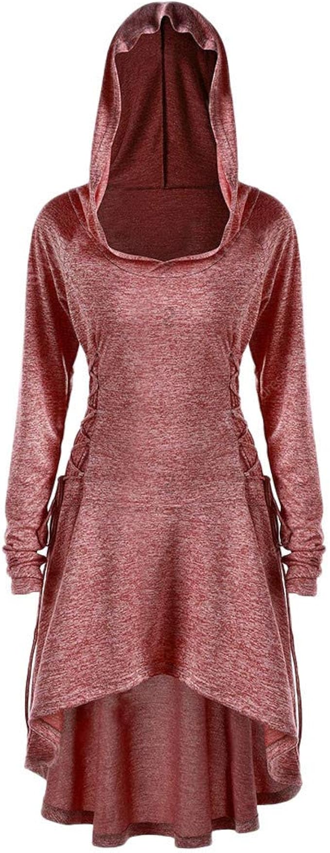 Hffan Damen Madchen Retro Stil Kapuzenkleid Langer Blusen Einfarbig Elegant Festkleid Schon Bequem Langarm Kleid Basic Kleider Mit Kreuzgurte Blusenkleider Amazon De Bekleidung