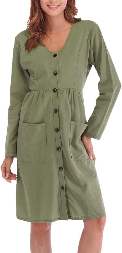 Simple Fashion Freizeit Langarm Kleider Blusenkleider Strandkleider Fruhling Und Herbst Damen Knielang Kleid Mit Knopfe Bequeme Mode V Neck Kleid Tunikakleid Abendkleider Partykleid Ballkleid Amazon De Bekleidung