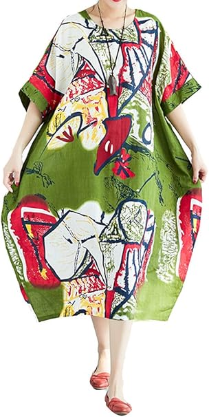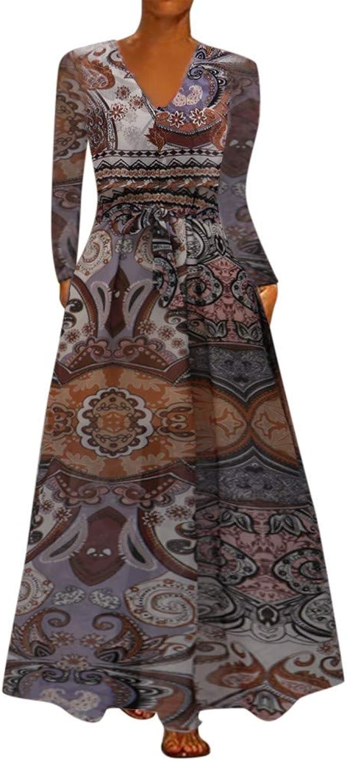 Zuzongyr Damens Kleid Tulpenkleid Frauen Maxikleider Langarm V Ausschnitt Retro Ethnisch Druck Lose Falten A Formigen Langen Bodenlange Blusen Kleider Amazon De Bekleidung