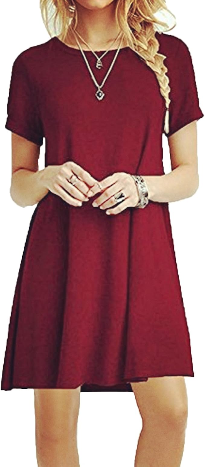 Znystar Frauen Sommer Lose Kurze Armel Casual Kleid Blusen Kleid Lose Tunika Casual T Shirt Kleid Amazon De Bekleidung