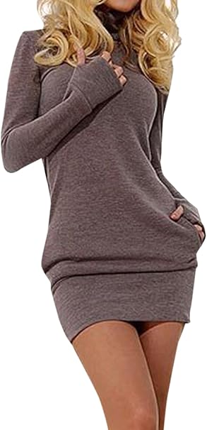 Herbst Und Winter Damen Pulli Minikleid Casual Mode Langarm Kleider Blusenkleider Strickkleider Sexy Etui Kleid Wickelkleider Tunikakleid Abendkleider Club Partykleider Amazon De Bekleidung