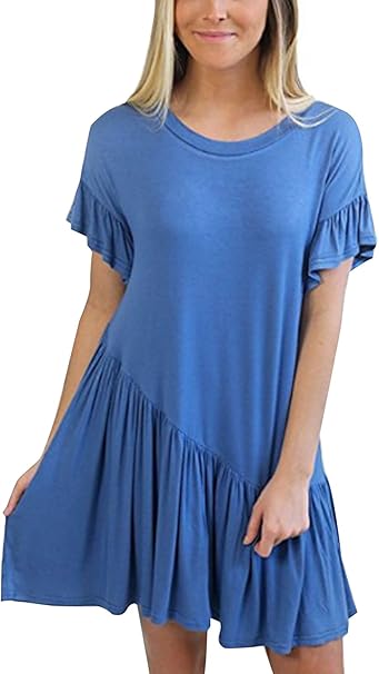 Sommer Kurz Kleid Bequeme Freizeit Rundhals Kurzarm Shirt Kleid Strandkleider Blusenkleider Mode Irregular Lotusblatt Seite Falten Kleider Amazon De Bekleidung