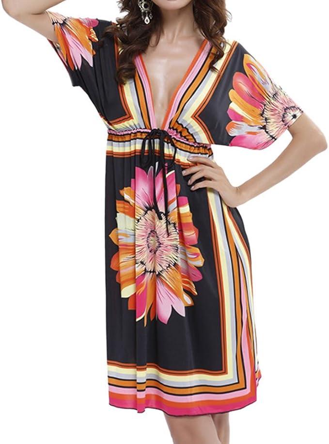 Lopily Lose Tunika Blusenkleider Damen Sommer Floral Print Plisse Strandkleid Kleider Stretch Falten Blume Gedruckt Sommerkleider Knielang Blusenkleid T Shirt Kleid Amazon De Bekleidung