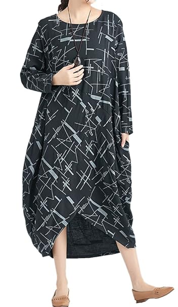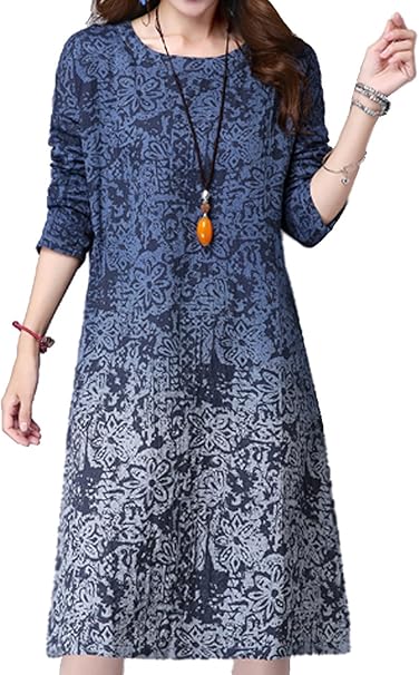 Ilpm5 Damen Freizeitkleid Plus Size Langarm Lose Kleid Rundhals Print Mini Kleid Tunika Blusen Kleid Blau S Amazon De Bekleidung