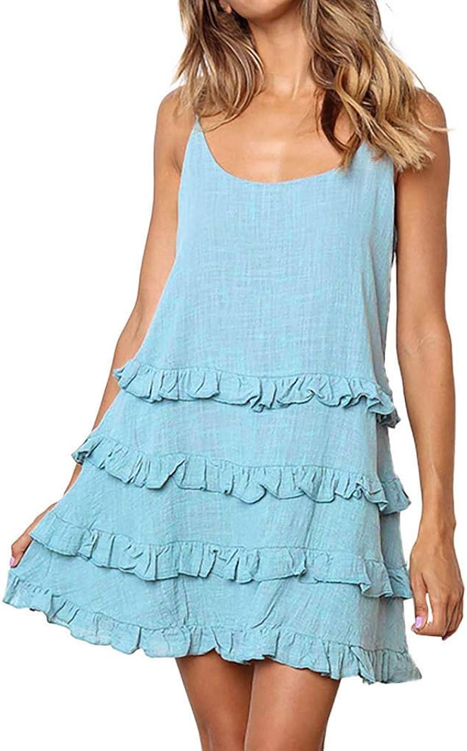 Ilpm 5 Damen Sommer Casual Style U Ausschnitt Naturliche Soild Sleeveless Sling Ruschen Midikleid Prinzessin Kleid Sommerkleid Slim Blusen Kleider Mode Sommerkleid Kleider Damen Amazon De Bekleidung