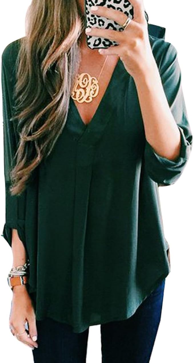 Silver Basic Damen V Ausschnitt Langarm Chiffon Blusen Kleider Lose Freizeit Kleid Strandkleider Einfarbig Casual Langshirt Amazon De Bekleidung