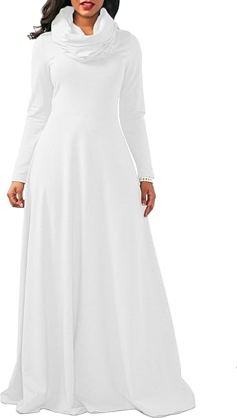 Woznloye Fruhling Herbst Damen Grosse Grosse Kleid Freizeit Einfarbig Lang Kleid Blusenkleider Mode High Neck Langarm Kleider Partykleid Cocktailkleid Ballkleid Abendkleider Amazon De Bekleidung