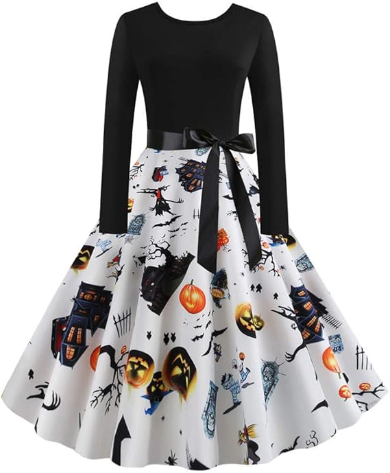 Kleid Damen 50er Vintage Retro Hepburn Stil Cocktailkleider Happy Halloween Piebo Frauen Langarm O Hals Kleid Clubbing Karneval Eleganten Kleid Rock Abend Party Prom Dress Blusenkleid Blusen Kleider Amazon De Uhren