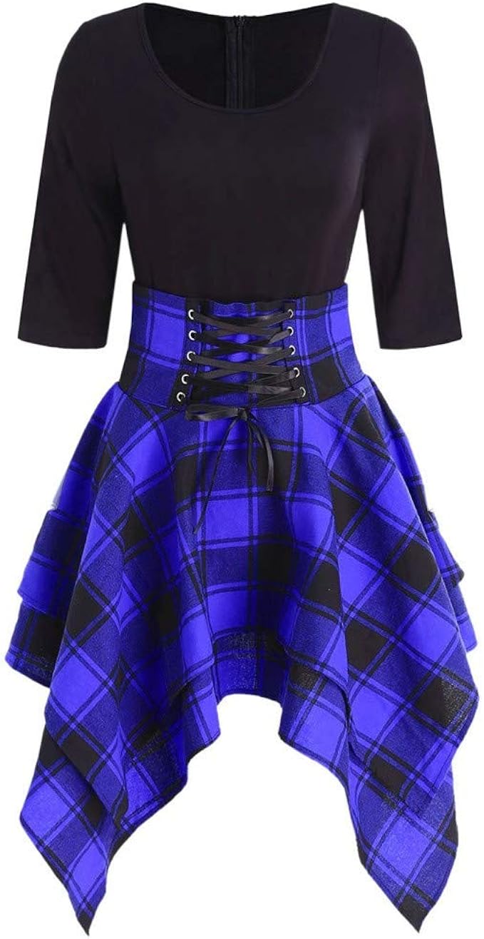 Kudico Kleid Damen Lassige Spitze Plaid Printing Patchwork Kleid Langarm T Shirt Minikleid Kleider Blusen Kleider Abend Party Prom Dress Blusenkleid Amazon De Bekleidung