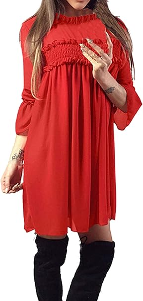 Ajpguot Damen Kleider Choker V Ausschnitt Sommerkleider Langarm Freizeitkleider Lose Minikleid Mit Schlitz Am Armel Einfarbig Kurz Kleid Blusenkleider Strandkleid Amazon De Bekleidung