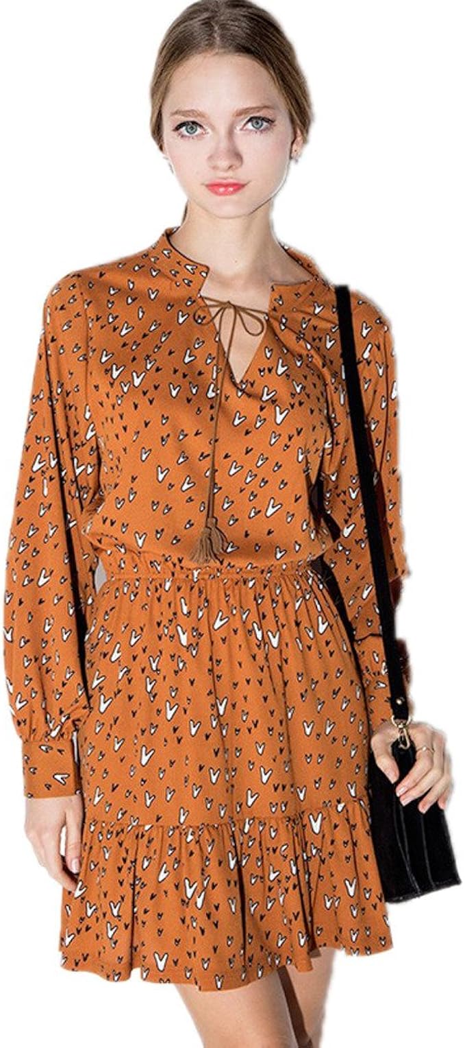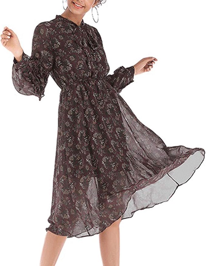 Woznloye Fruhling Herbst Damen Midi Kleid Freizeit Druck Kleider Blusenkleider Strandkleider Mode Langarm Kleid Tunikakleid Cocktailkleid Abendkleider Partykleider Amazon De Bekleidung